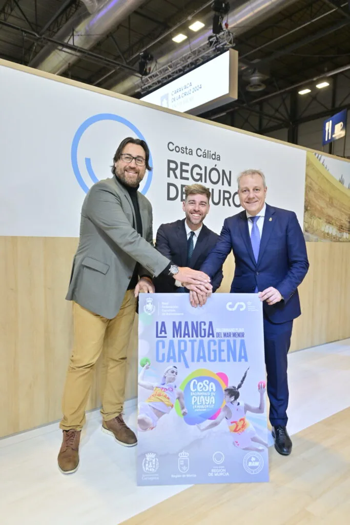 Con la presencia de Fran Sánchez, Director General de Deportes, Noelia Arroyo, alcaldesa de Cartagena, Paco Blázquez, presidente de la RFEBM, Blas Parrilla, vicepresidente de la RFEBM y Daniel Santos, presidente de la Federación Territorial se llevó a cabo la presentación del CESA BM PLAYA 2024 que se celebrará en La Manga del Mar Menor el 1, 2 y 3 de julio.